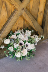 Modern-rustic-chic style is a must when the venue is in a gorgeous barn surrounded by open fields! Their colors are sage green, white, and grey, which work just so well with the venue.